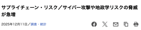 サプライチェーン・リスク/サイバー攻撃や地政学リスクの脅威が急増