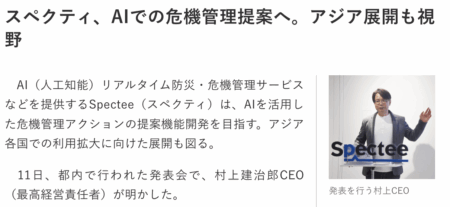 スペクティ、AIでの危機管理提案へ。アジア展開も視野