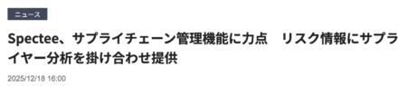 Spectee、サプライチェーン管理機能に力点 リスク情報にサプライヤー分析を掛け合わせ提供