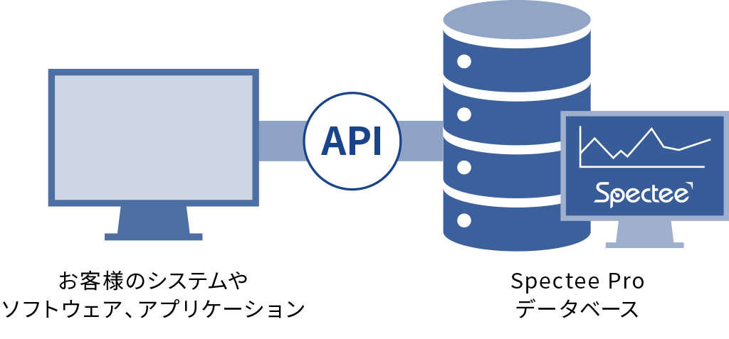 プログラムと連携するための接続口のことを API(Application Programming Interface)といいます。Spectee Pro では、お客様が現在利用されているシステムやソフトウェア、アプリケーションなどとデータ連携が可能な API を用意しています。