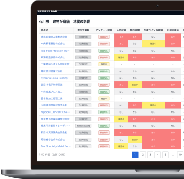 影響がわからない発災時には自動アンケート機能などで、サプライヤーの被害状況や生産への影響を一元管理できます。